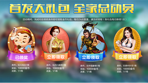 首发期间派发海量游戏奖励从18日开始的游戏首发期间,所有的玩家进入游戏均可轻松获得“首发五重礼”奖励。玩家只要完成首次登录,或者在游戏内完成相应的玩牌任务,加入官方玩家Q群(478065866)、关注“博雅电视游戏”官方微信公众号等,均可获得相应数量的游戏币奖励。