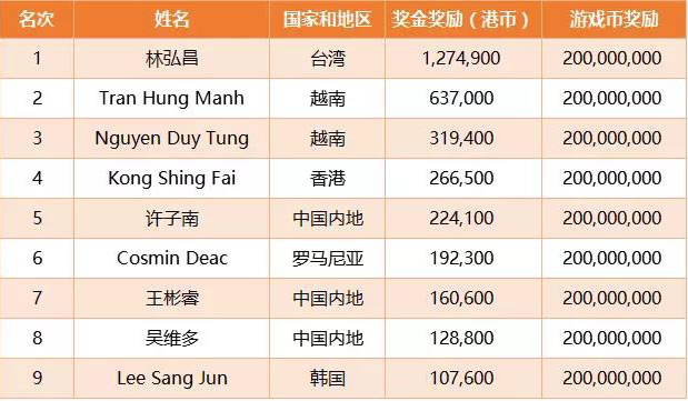 决赛桌选手排名与奖励一览,亚洲选手称霸