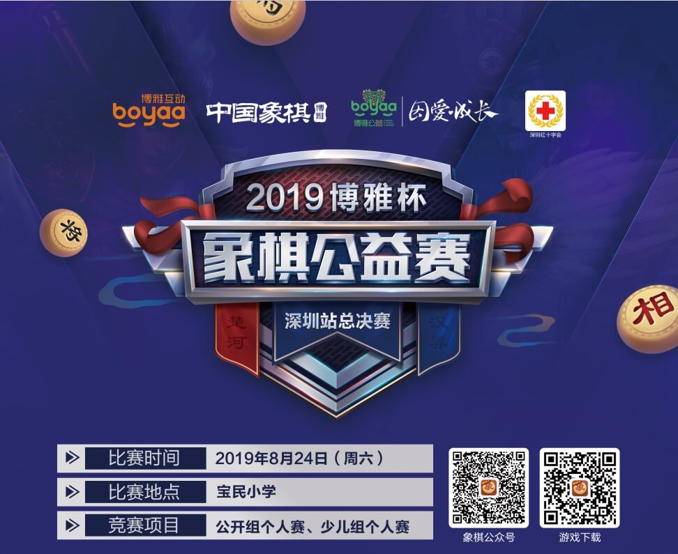 自8月15日至8月21日,2019“博雅杯”象棋公益赛为期一周的线上海选终于即将迎来令人期待的总决赛,与从线下赛晋级的80名选手,将于8月24日在象棋示范学校——深圳市宝民小学一同进行面对面的棋王对决!