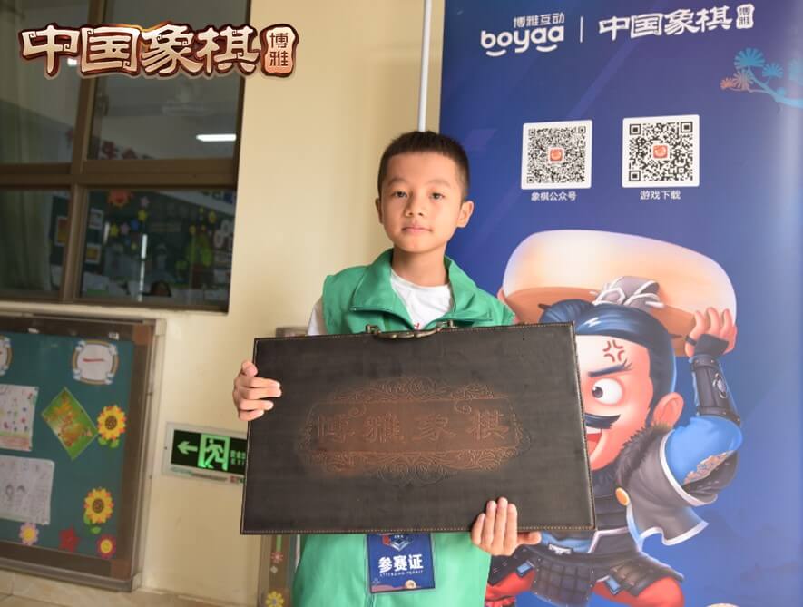 休息时间,博雅互动赛事组悉心准备的抽奖环节,这位小朋友很十分运地抽到了由博互动雅定制的高级象棋,希望能为他的学棋之路添砖加瓦。