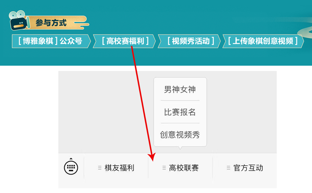 参加创意短视频征集活动,让我们一起告诉世界什么是年轻的创意!短视频不限时间、主题及内容,只要有象棋元素都可以参加,让我们来倾听、观看年轻的活力以及年轻的生活吧!